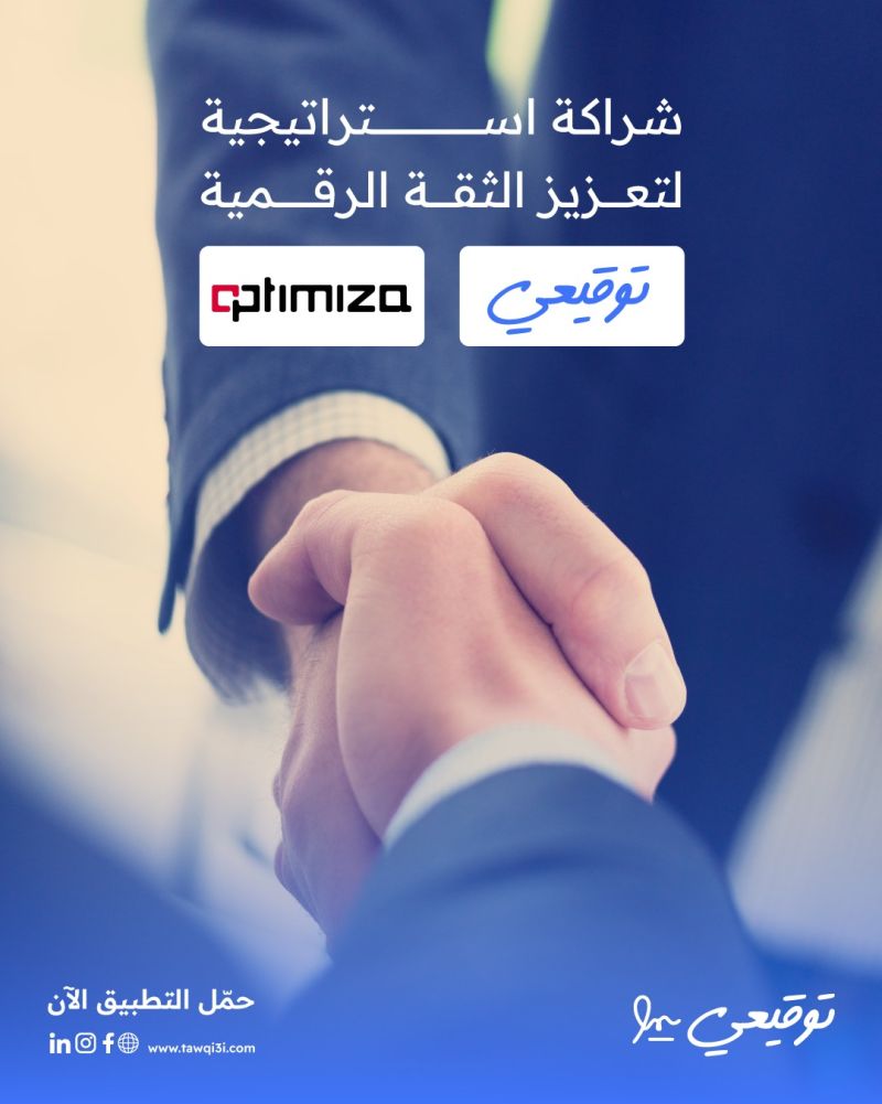 نعتز في توقيعي بالإعلان عن توقيع مذكرة تفاهم استراتيجية مع شركة Optimiza، في خطوة تهدف إلى توسيع نطاق حلول الثقة الرقمية وتسريع تبني التوقيع الرقمي في مختلف القطاعات.