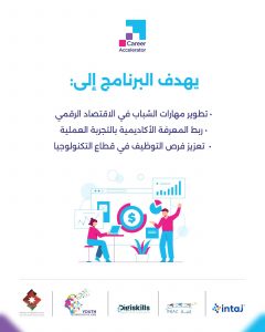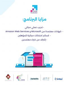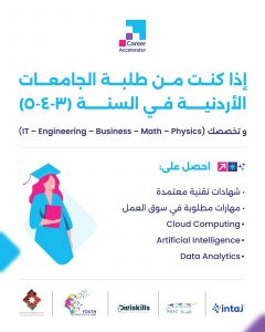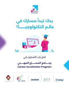 March 24, 2026 announcement فتح باب التسجيل في برنامج المسرع المهني طوّر مهاراتك في أكثر المجالات طلبًا في سوق العمل إذا كنت من طلبة السنوات الثالثة أو الرابعة أو الخامسة، فهذه فرصتك لتعزيز مهاراتك الرقمية والاستعداد لمستقبل مهني واعد. بادر الآن بالتسجيل في برنامج المسرّع المهني ، أحد برامج مشروع الشباب والتكنولوجيا والوظائف لدى وزارة الاقتصاد الرقمي والريادة. • يقدم البرنامج: – تدريبات عملية مجانية متخصصة – شهادات معتمدة (Microsoft & AWS) – المهارات الأكثر طلبا في سوق العمل • يتم تنفيذ البرنامج من قبل مؤسسة إنجاز بالشراكة مع جميعة إنتاج 🔗 للتسجيل من خلال الرابط التالي: https://lnkd.in/dB24xTUz