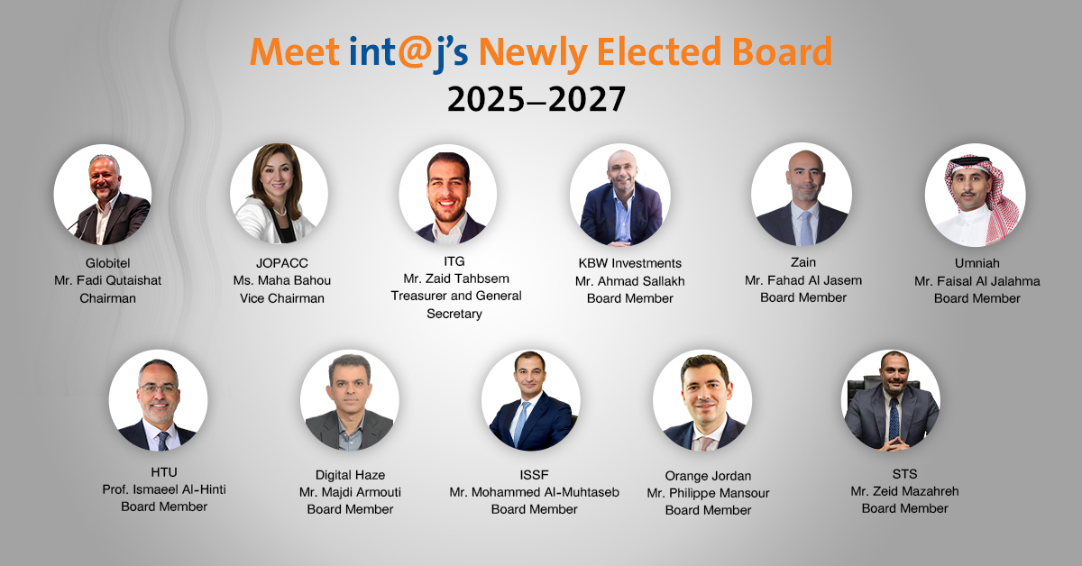 We are pleased to introduce the new Board of Directors of the Information and Communications Technology Association of Jordan – int@j, elected to serve the ICT sector for the term 2025–2027.